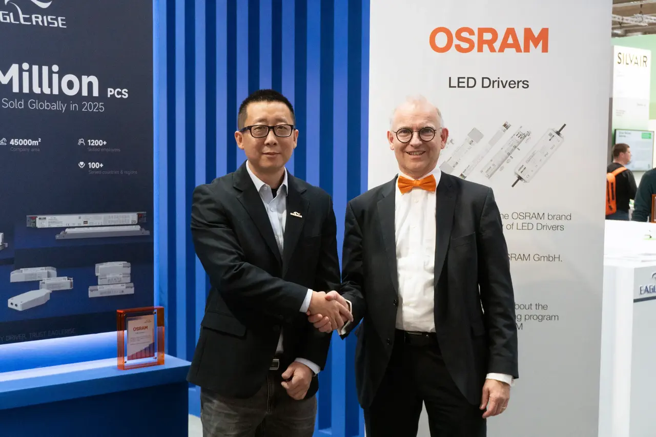 Under the agreement, Eaglerise, a well-established Chinese company, is granted a license under the OSRAM brand for general lighting LED drivers for the regions APAC and EMEA from March 1, 2026 onward. This is a further step to ensure the strong presence of the OSRAM brand in the general lighting space after the current brand licensing cooperation for LED drivers and other lighting components expires April 3, 2026 .