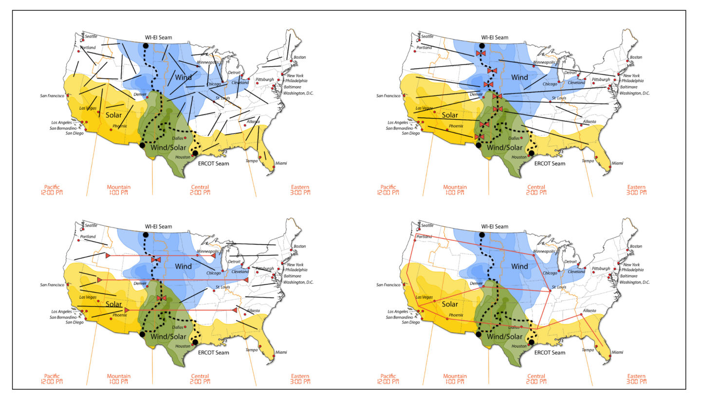 The three major components of the U.S. power system—the Western Interconnection, the Eastern Interconnection, and the Electric Reliability Council of Texas—operate almost independently of each other.  How could a nationwide high-voltage (HV) grid be developed in the US and what would be the benefits?