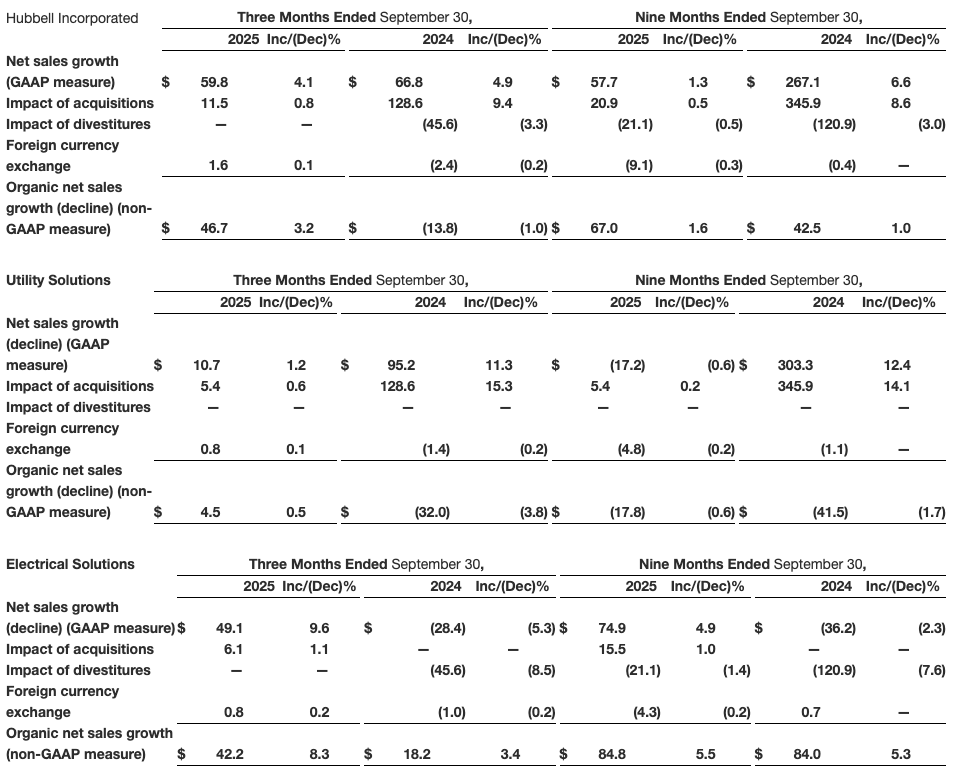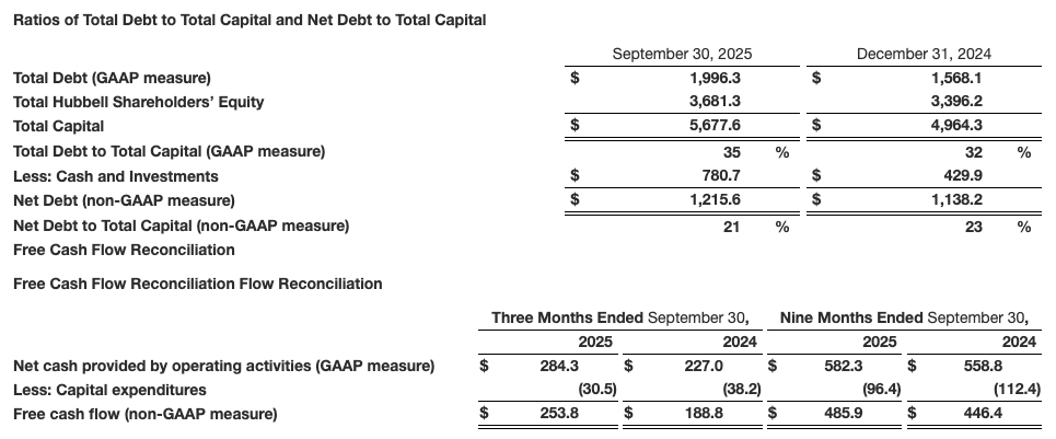 - The HUBBELL Third Quarter 2025 Earning Call Presentation can be viewed here: https://hubbell.gcs-web.com/static-files/c05025d1-a247-49ff-84ff-ba681f830ca4