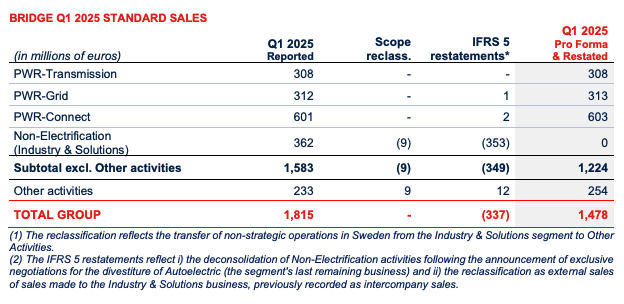 Q1 2025 is (i) pro forma from reclassifications of non-core automotive activity in Sweden from Industrial & Solutions to Other activities and (ii) restated in compliance with IFRS 5.