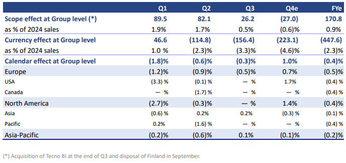 - A stable net scope impact, with the acquisitions of Itesa in France and Tecno Bi in Italy offset by Finland disposal