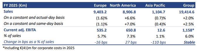 → FY 25 sales of €19,414.6m, boosted by organic growth and acquisitions