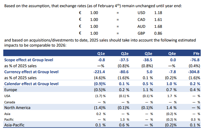 - A negative net scope effect of (0.6)%, resulting from the divestment of Rexel’s New Zealand and Finland operations (respectively deconsolidated from Feb.1st and Sept.1st, 2025), offset by the acquisitions in North America (Warshauer, Schwing, Jacmar, Talley, Electrical Supplies Inc) and in Europe (Tecno Bi)